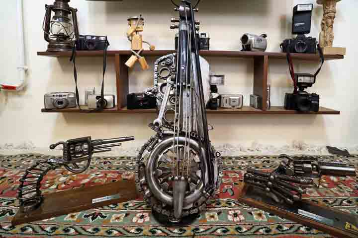 این هنرمند همدانی از دلِ فلزهای بیجان، حیوانات، سازها و اشیایی میسازد که پر از انرژی، عشق و خاطرهاند و هر پیچ و مهره، هر جوش و برش در کارهایش، ردّی از زندگی و شوق را در خود دارد. گویی هر قطعه فلز، داستانی تازه برای گفتن یافته است.