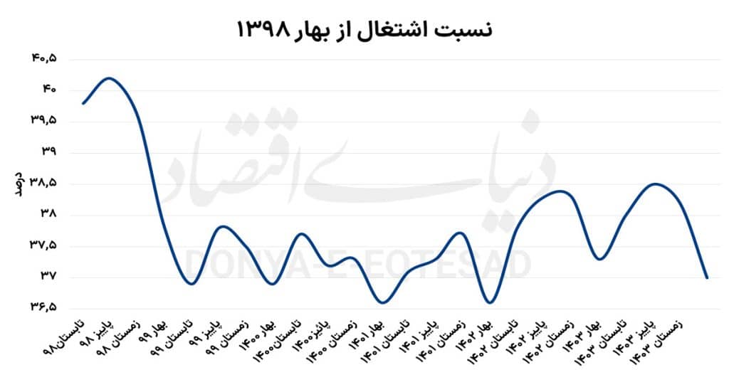بررسی آمارهای مربوط به نرخ مشارکت اقتصادی نشان میدهد در سال ۱۴۰۳، حدود ۷۸۶هزار نفر به جمعیت ۱۵سال به بالای کشور اضافه شده است؛ اما در این میان، تنها حدود ۱۷۹هزار نفر به جمعیت جویای کار پیوستهاند و ۶۰۷هزار نفر به جمعیت غیرفعال کشور ملحق شدهاند. این مساله در نهایت منجر به کاهش ۰٫۳واحد درصدی نرخ مشارکت اقتصادی در کشور شده است.